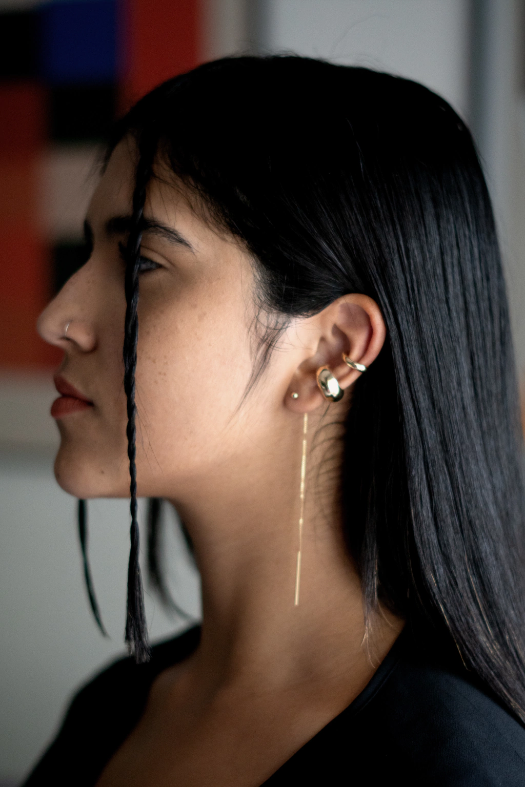 é super versátil, então você pode usar no dia a dia ou pra arrasar em eventos. é só usar sozinho pra um look mais clean ou juntar com outros brincos pra um visual mais poderoso.
