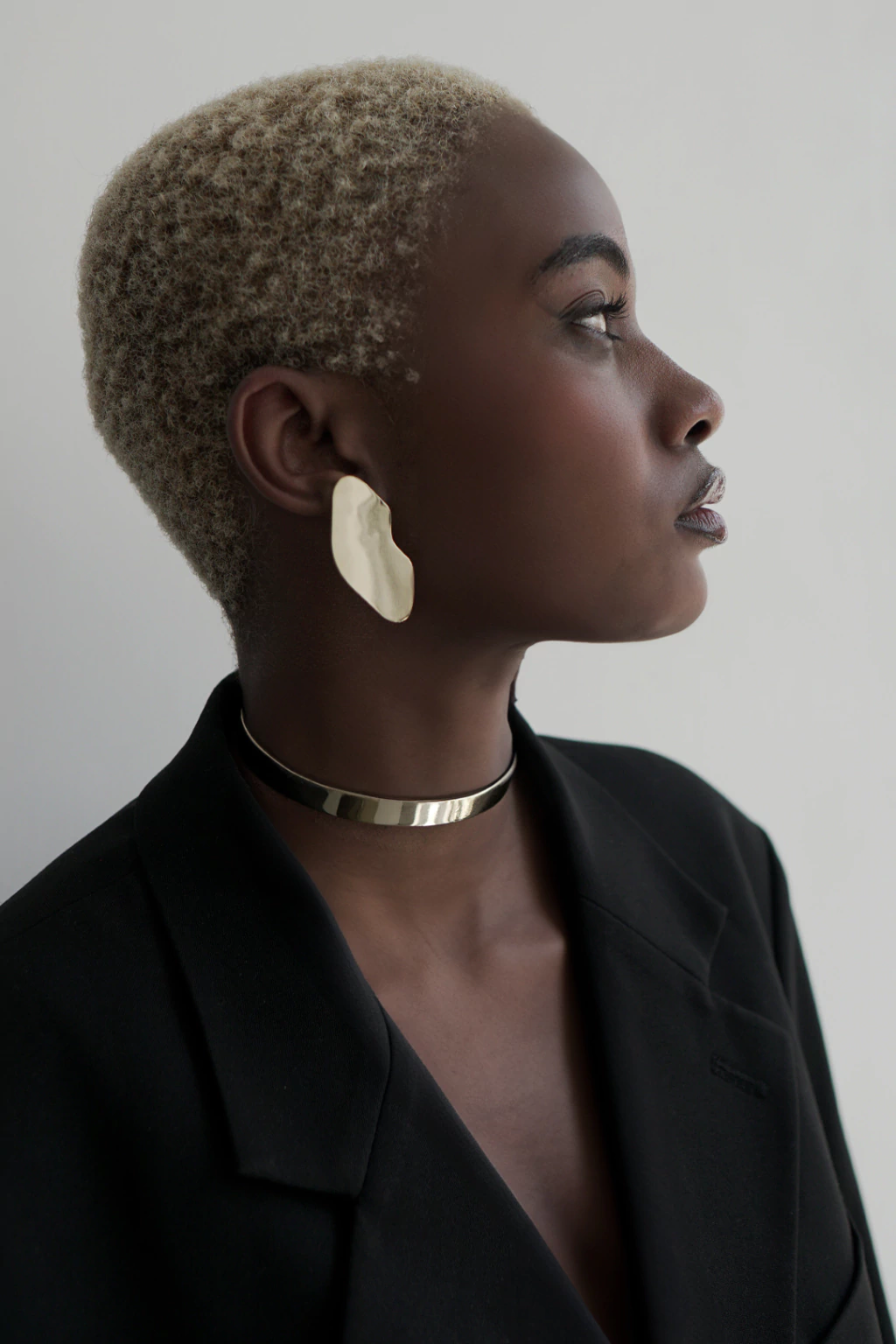 brinco delicado e brutal. com design organico em chapa lisa, é praticamente um espelho.